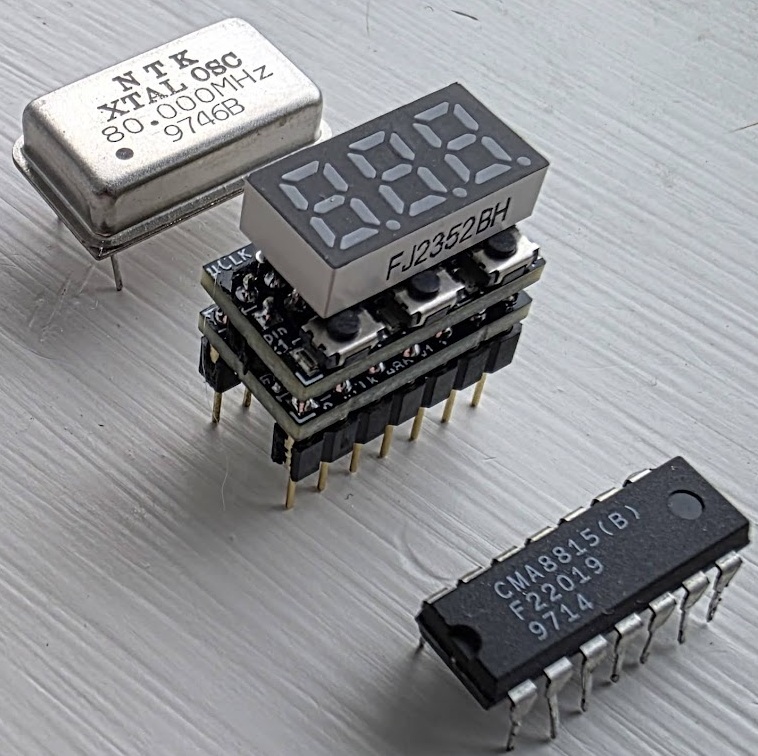 Some examples of the DIP-14 PLL oscillator chips it can replace are MX8315 and CM8815.